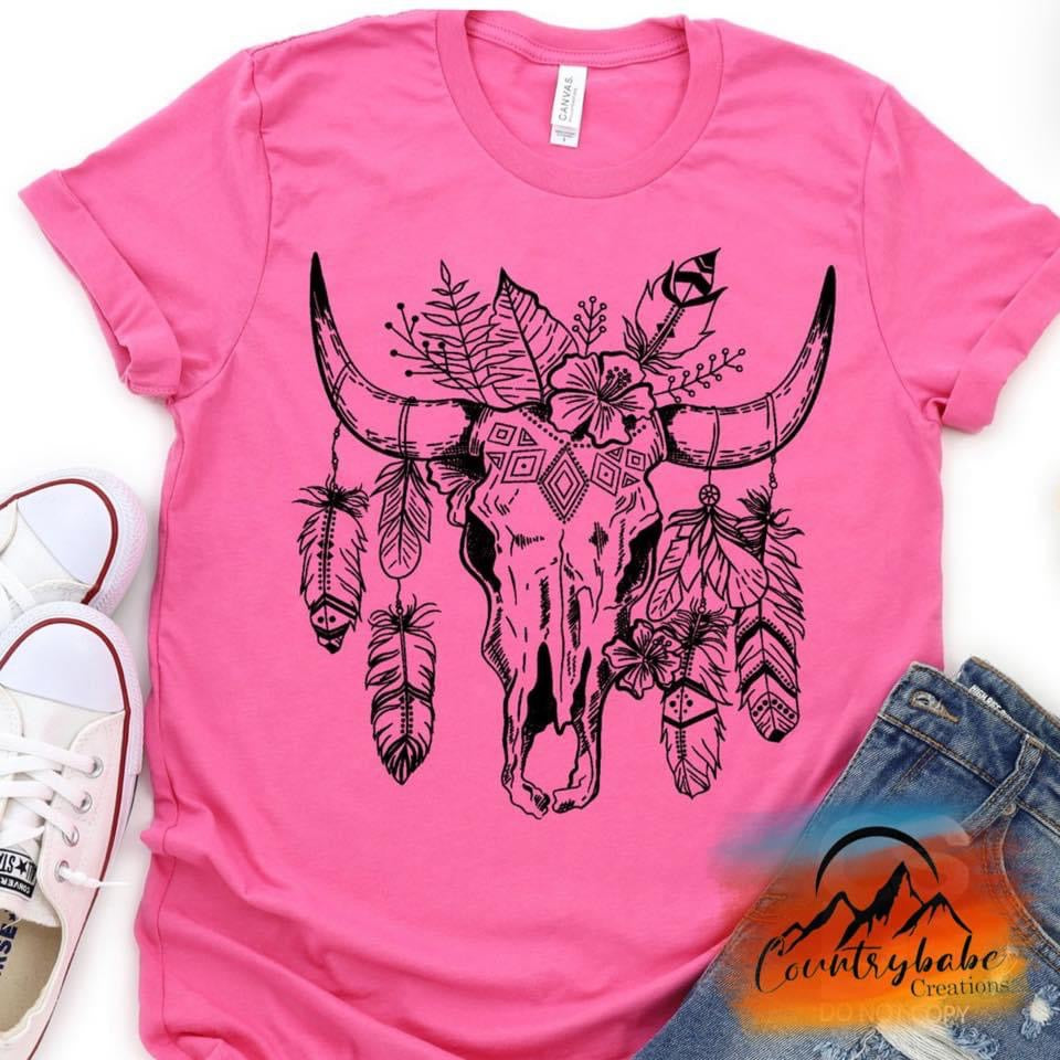 Boho Bull black ink feathers